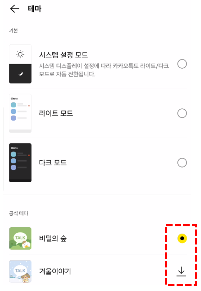 1. 카카오톡에서 제공하는 기본 테마 적용