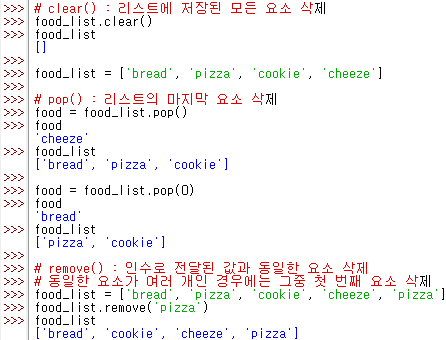 ✅ 삭제 메소드_clear(), pop(), remove()