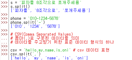 하나의 문자열을 여러 개의 문자열로 분리해서 저장한 리스트를 반환