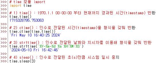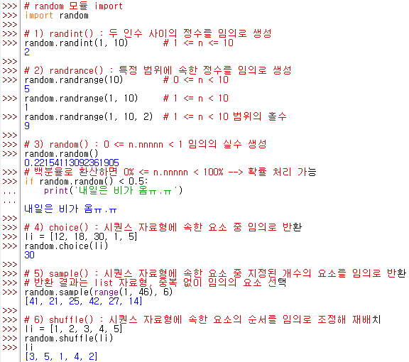 - 별도의 설치 없이 import 후 바로 사용가능한 모듈