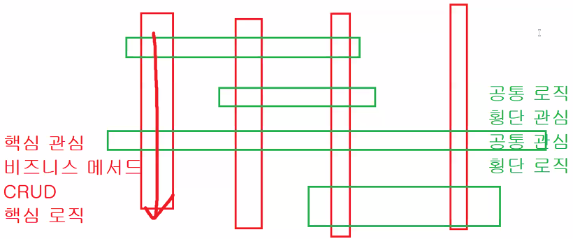 - 이를 통해 공통로직(횡단관심)과 핵심로직(== 비즈니스 메서드, CRUD, 핵심관심)을 분리해 코드를 모듈화하고 관리할 수 있음
